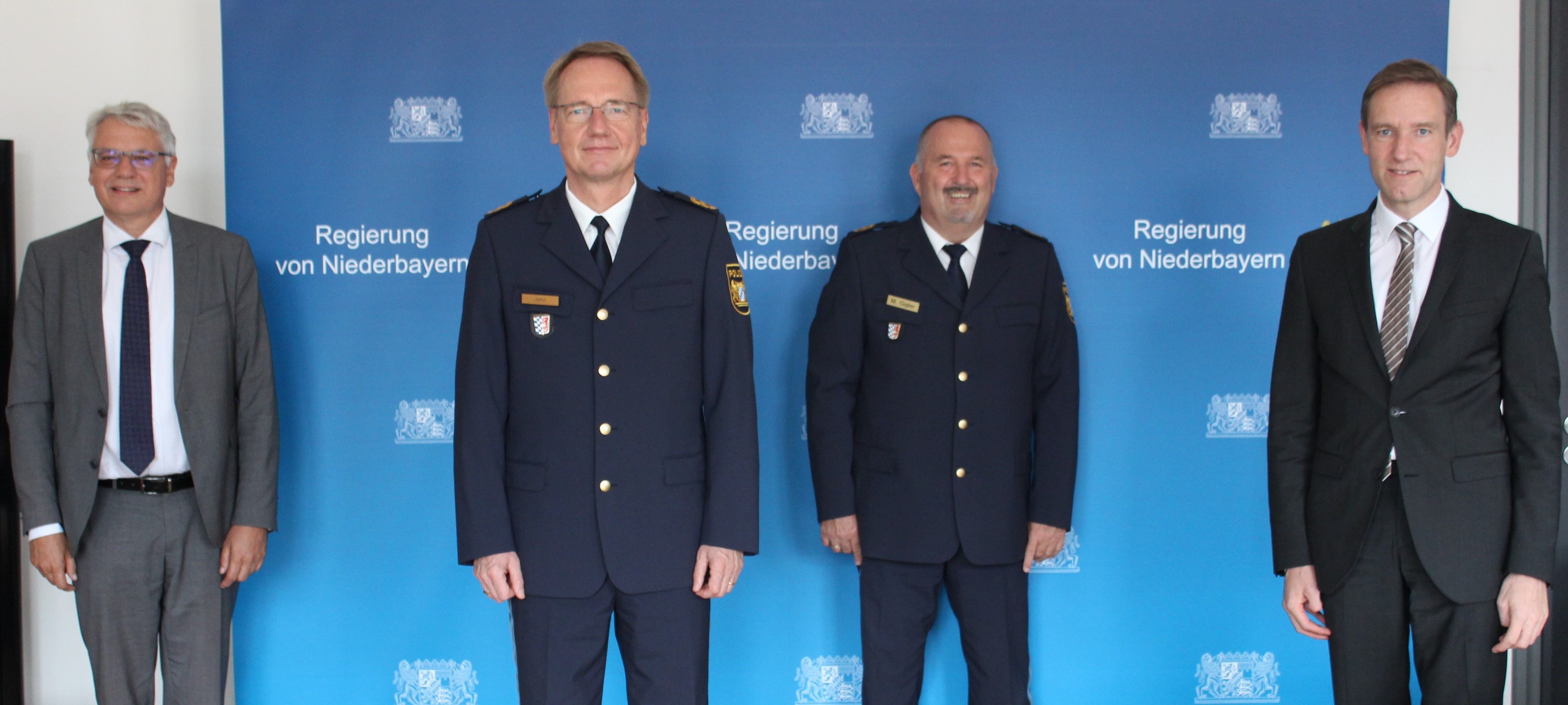 Regierungspräsident Haselbeck dankte dem Polizeipräsidenten insbesondere für die gute Zusammenarbeit in der Corona-Pandemie. Bis zu 65 Einsatzkräfte aus dem Polizeibereich haben die niederbayerischen Gesundheitsämter zu den Hochzeiten der Pandemie tatkräftig unterstützt. Haselbeck: "Die enge und engagierte Zusammenarbeit der Sicherheitsbehörden ist ein entscheidender Erfolgsfaktor für Niederbayern. Wir haben heute vereinbart, diese gute Zusammenarbeit noch intensiver fortzusetzen."