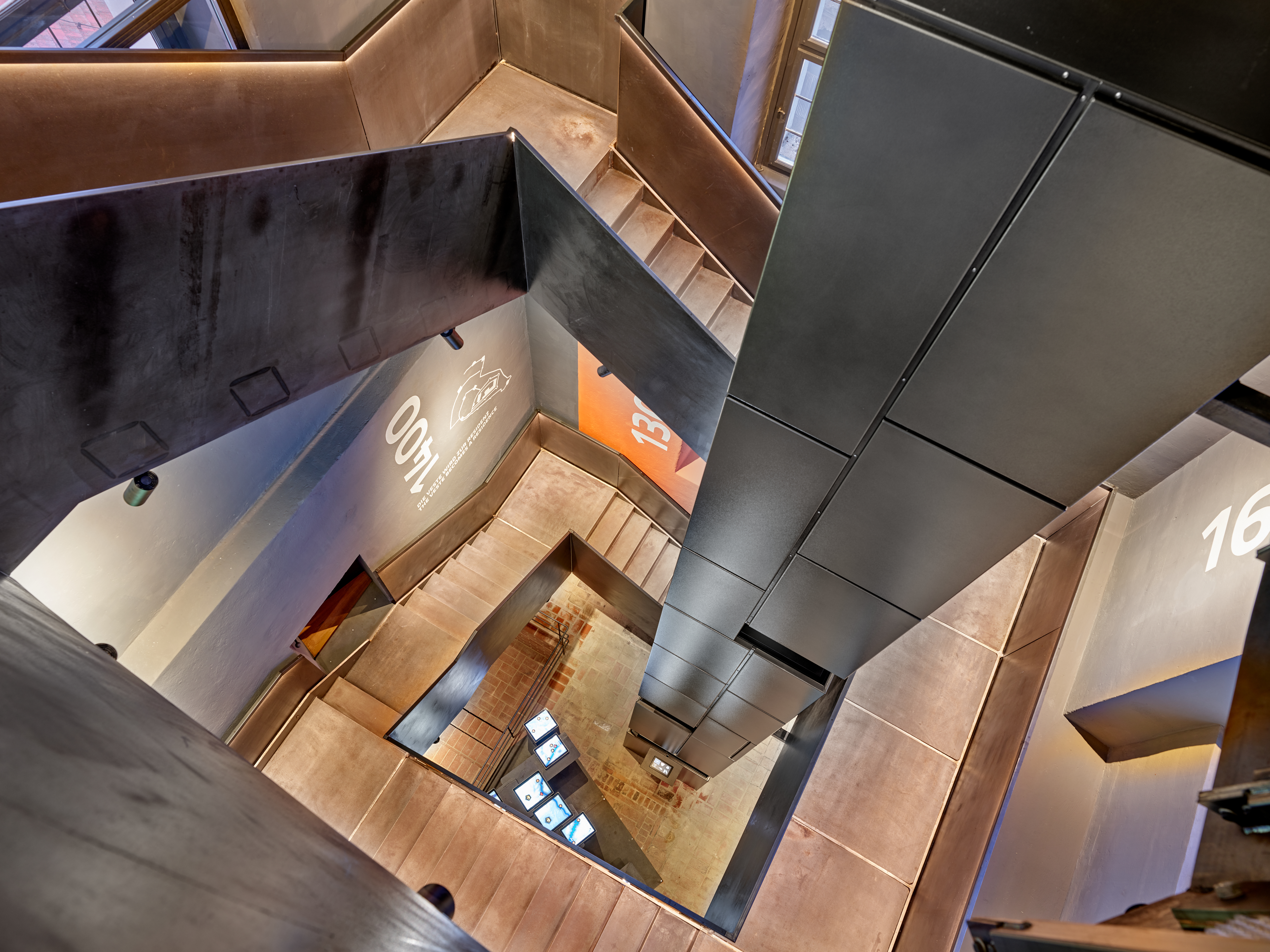 Neben der Neugestaltung der Treppenanlage wurden auch die Türen, Fenster und sonstigen Öffnungen denkmalgerecht, energetisch und brandschutztechnisch ertüchtigt. Der gesamte Innenraum wurde an das digitale Ausstellungskonzept angepasst und mit den dafür notwendigen Strom- und Datenleitungen ergänzt.