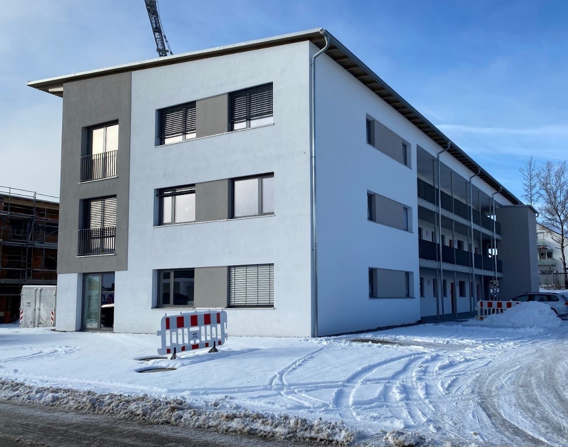 Ein gelungenes Beispiel für geförderten Wohnungsbau errichtet die Soziale Wohnungsbaugenossenschaft Eggenfelden e.G. in der Landrat-Ostermeier-Straße in Eggenfelden. Nach Abschluss des ersten Bauabschnitts konnten bereits die ersten zwölf Wohnungen bezogen werden. Auch im zweiten Bauabschnitt entsteht preisgünstiger, barrierefreier Wohnraum. Hier errichtet die Genossenschaft nun weitere 18 geförderte Wohnungen, eine Senioren-Wohngemeinschaft und drei freifinanzierte Wohnungen. Die Zwei- bis Vier-Zimmerwohnungen reichen von 55 bis 105 m2 Wohnfläche, werden über einen Laubengang erschlossen und sind mit einem Aufzug barrierefrei erreichbar. Dabei sind die geförderten Wohnungen Menschen mit kleinen und mittleren Einkommen vorbehalten.