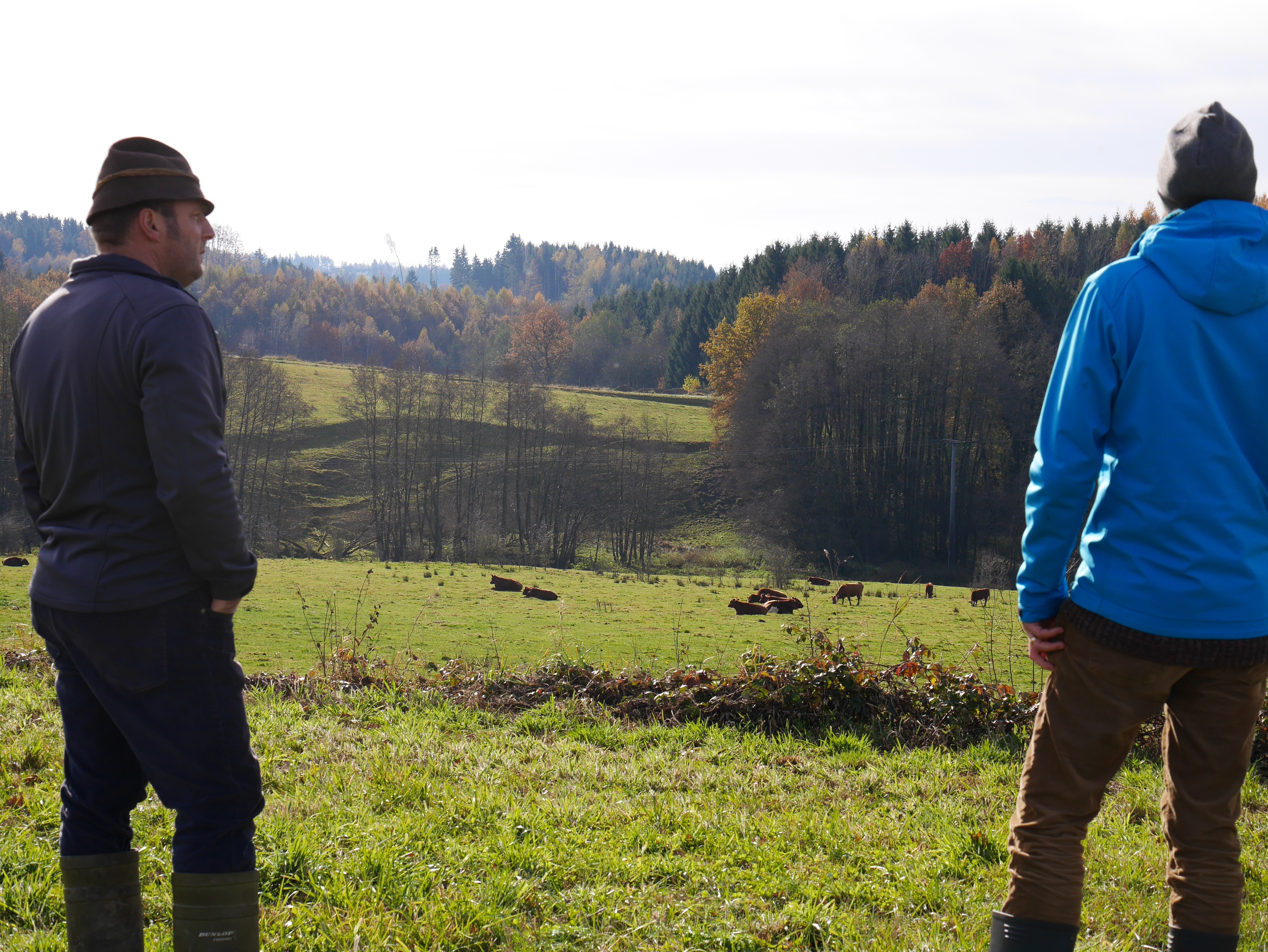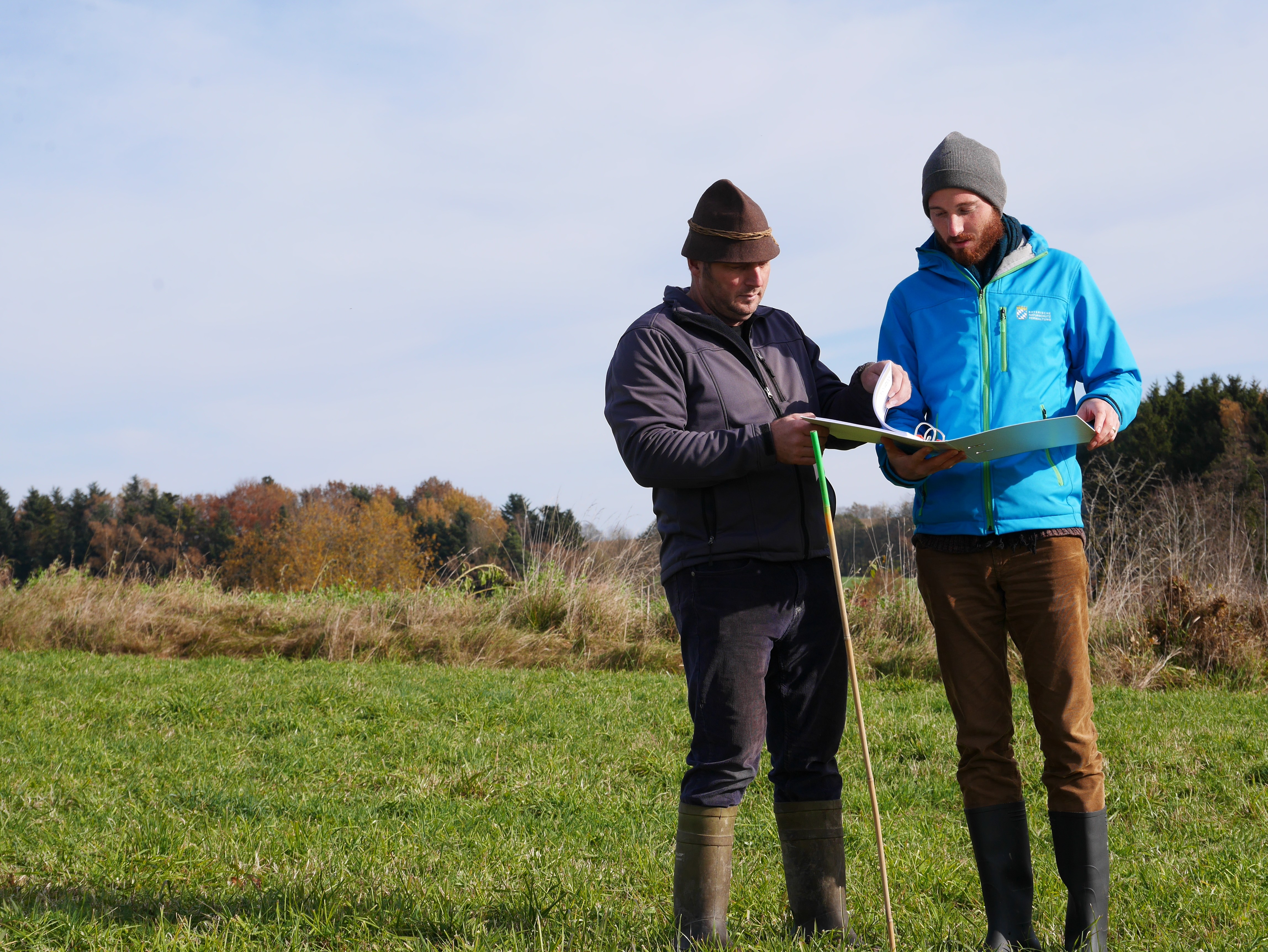 Landwirtschaft (Bernhard Lüftl) und Naturschutz (Martin Mall) gemeinsam für mehr Artenvielfalt.