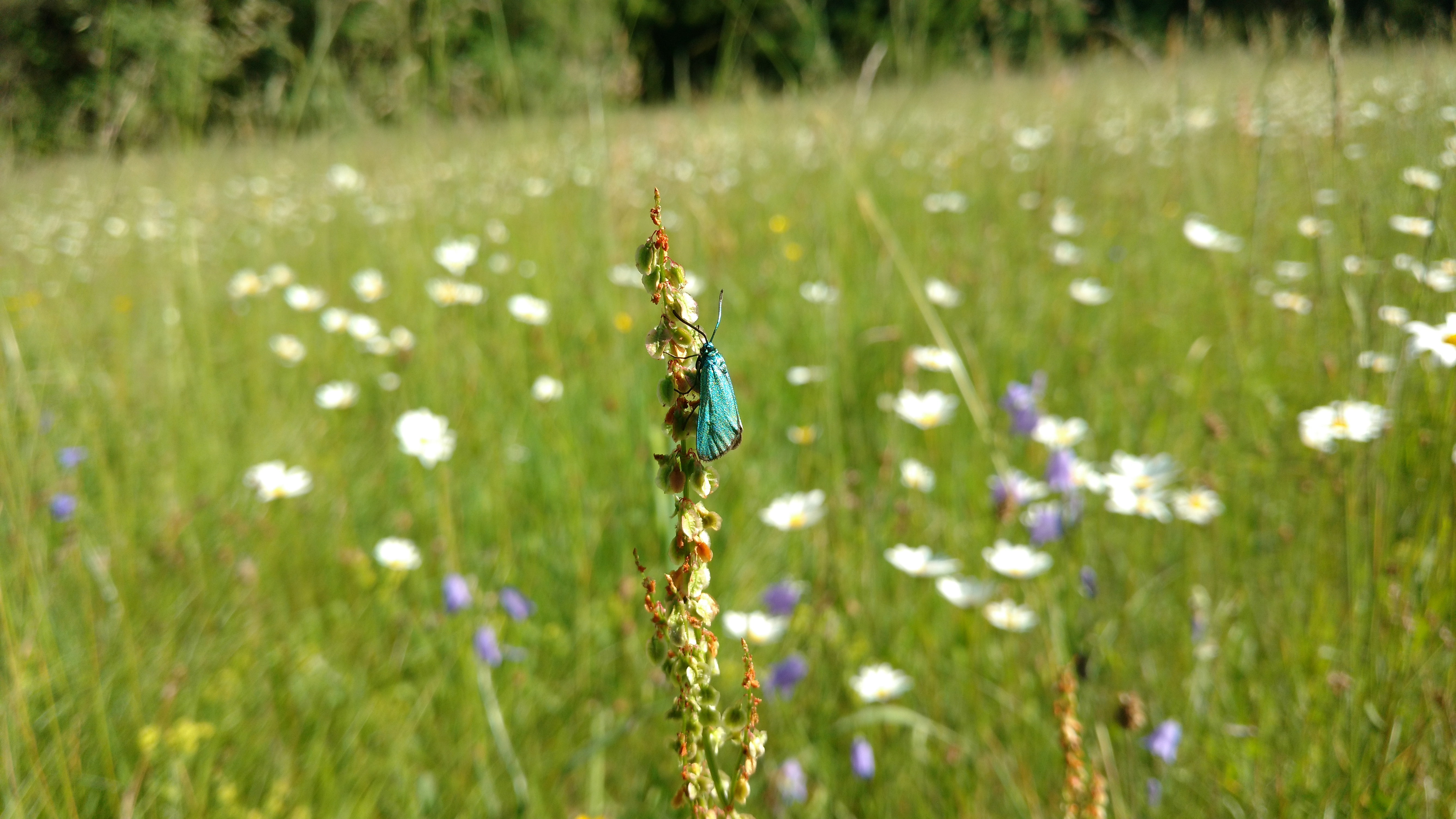 Ein Ampfer-Grünwidderchen auf einem Sauerampfer. Der Insektenschutz und die Stärkung der Artenvielfalt stehen im Mittelpunkt der „Blühpakt-Starterkit 2“-Aktion, für die sich Kommunen ab sofort bewerben können.