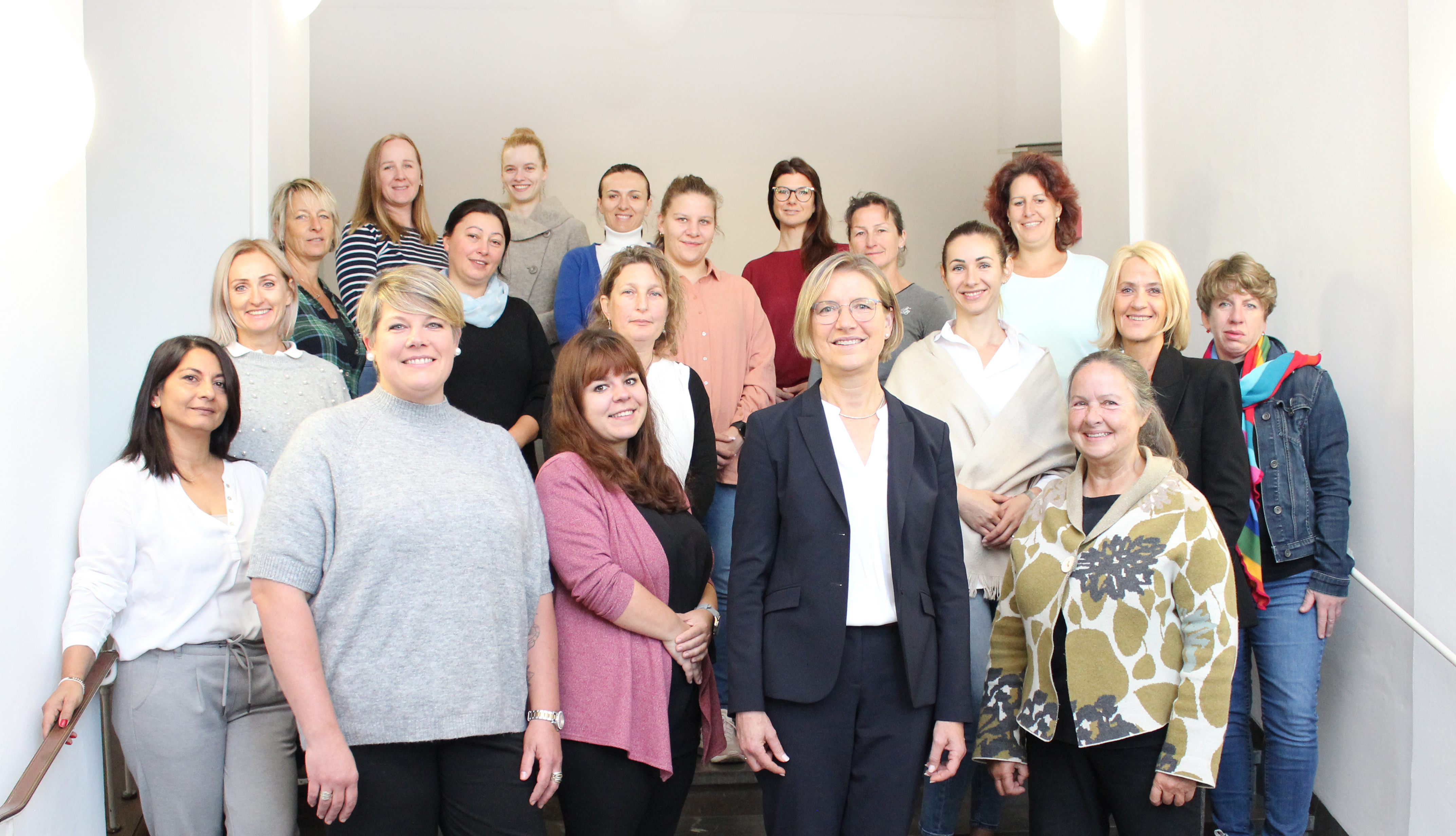 Start in einen sinnstiftenden Beruf mit Zukunft – das neue „Gesamtkonzept für die berufliche Weiterbildung“ für Kindertageseinrichtungen des Bayerischen Familienministeriums macht’s möglich. 17 Nachwuchs-Kitakräfte aus Landshut nutzten diese Chance. Zum Auftakt ihres „Qualifizierungskurses zur Ergänzungskraft“ wurden sie von Regierungsvizepräsidentin Monika Linseisen (Reihe vorne, Zweite von rechts), der Geschäftsführerin der Bildungsakademie, Dr. Dorothea Emmerl (Reihe vorne, rechts), Katrin Suhling von der Fachberatung Kindertagesbetreuung der Regierung (Zweite von rechts) sowie Kurs-Referentin Barbara Lehmer (Zweite von links) willkommen geheißen.