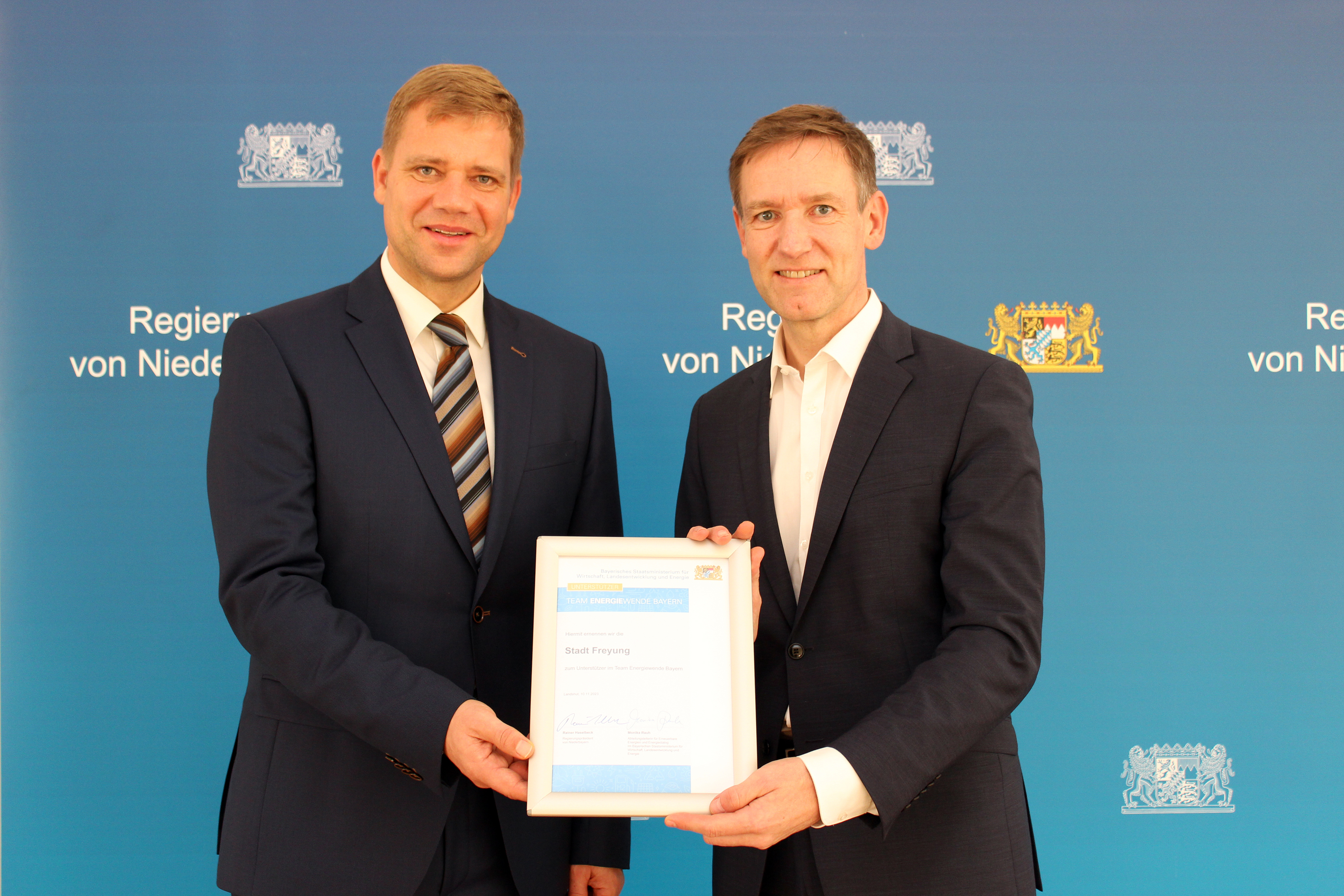 Neu im „Team Energiewende Bayern“: Stadt Freyung und Gemeinde Wiesenfelden setzen „starkes Signal für die Energiewende“ - Regierungspräsident Rainer Haselbeck würdigt Landkreise, Städte und Gemeinden für Engagement
