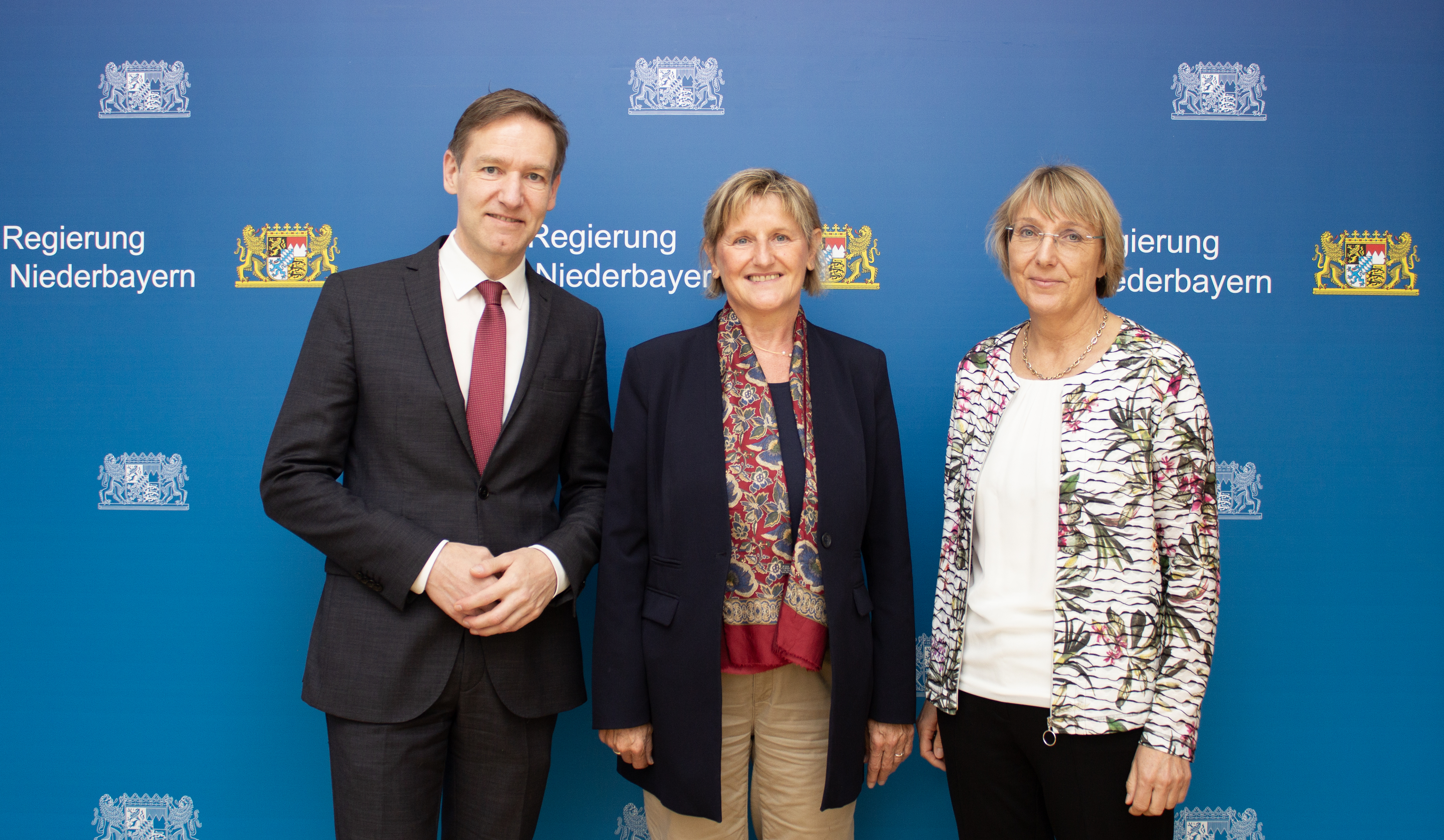 Das Sachgebiet „Agrarstruktur und Umweltbelange in der Landwirtschaft“, das im Bereich „Ernährung und Landwirtschaft“ der Regierung von Niederbayern angesiedelt ist, hat eine neue Leitung: Katharina Binsteiner hat die Position zum 1. Mai übernommen und tritt damit die Nachfolge von Karl Birk an, der sich in den wohlverdienten Ruhestand verabschiedete. Regierungspräsident Rainer Haselbeck hieß Binsteiner kürzlich im Beisein der Bereichsleiterin „Ernährung und Landwirtschaft“, Franziska von Krezmar, an ihrer Wirkungsstätte in Landshut willkommen und gratulierte ihr zur neuen Aufgabe.