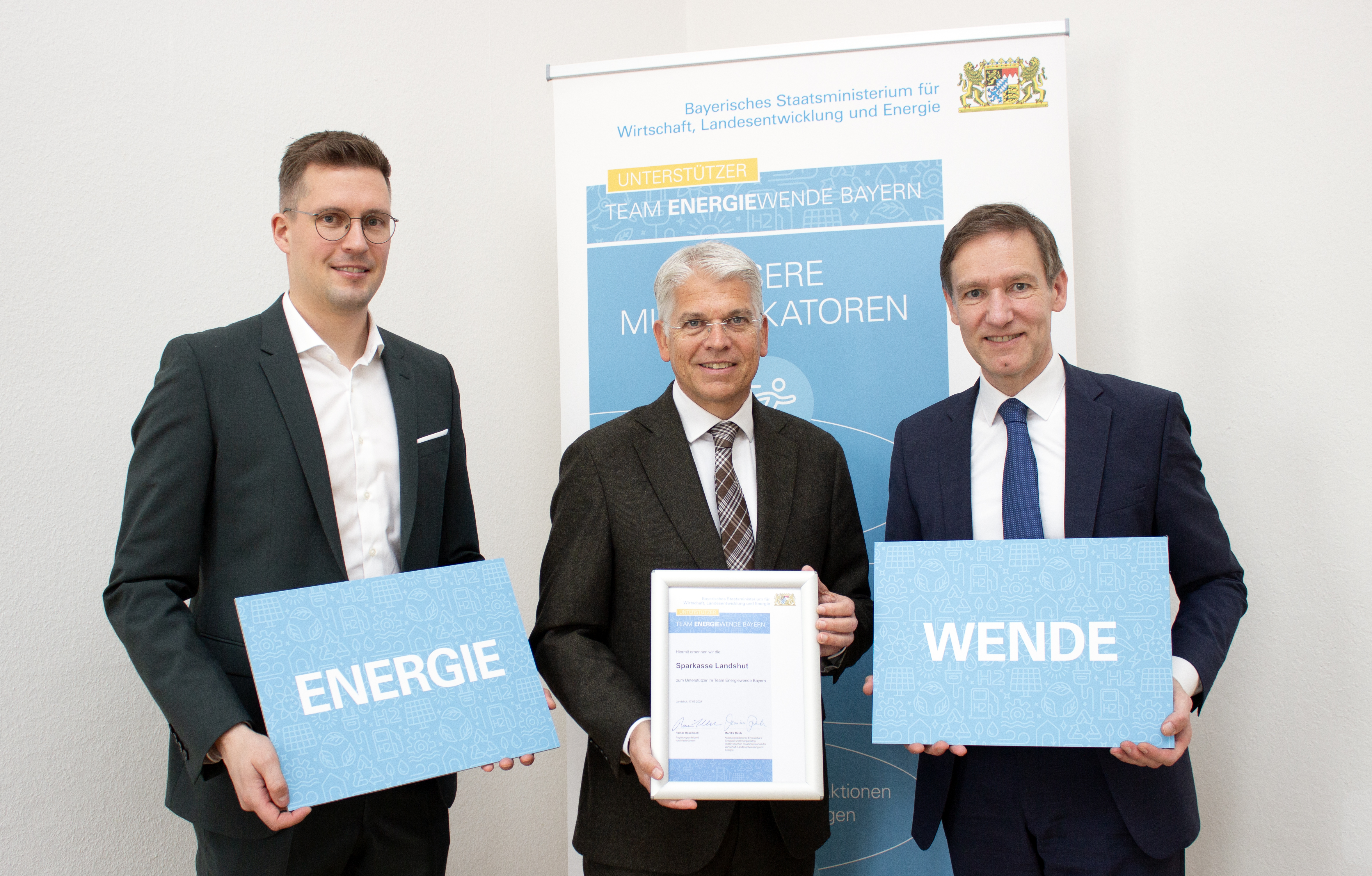 Der Vorstandsvorsitzende der Sparkasse Landshut, Helmut Muggenthaler, betont: „Nachhaltigkeit ist eines der Megathemen unserer Zeit. Wir sind von seiner Bedeutung überzeugt und befassen uns intensiv damit. Unser Ziel ist, spätestens 2035, im eigenen Geschäftsbetrieb CO2-neutral zu sein. Auch unsere Kundinnen und Kunden unterstützen wir aktiv bei der Transformation zu mehr Nachhaltigkeit. Die offizielle Ernennung als Unterstützer im „Team Energiewende Bayern“ freut uns daher sehr und ist eine weitere Bestätigung für unseren Weg.“