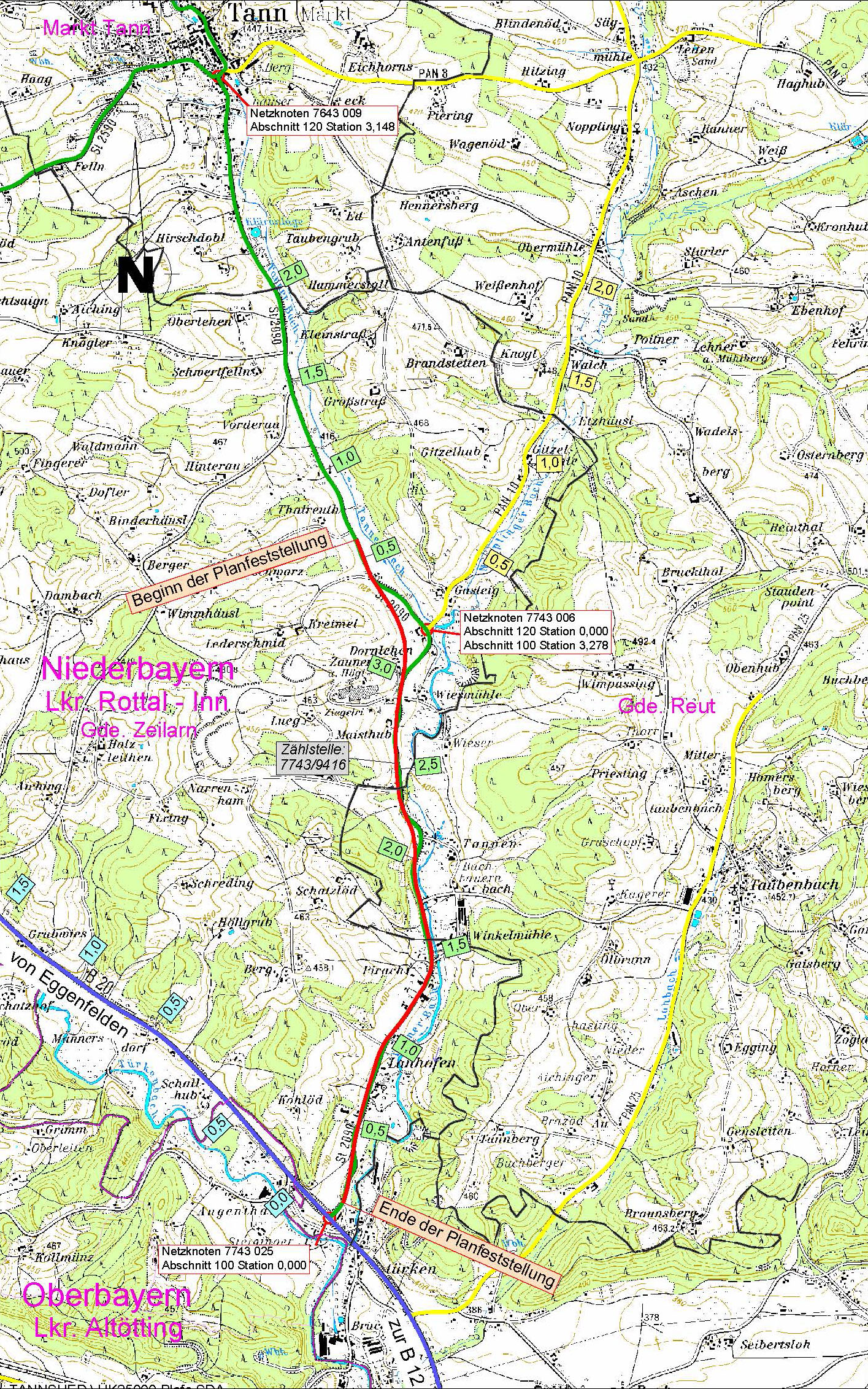 Die Regierung von Niederbayern hat dem Staatlichen Bauamt Passau, Servicestelle Pfarrkirchen, für den Ausbau des über dreieinhalb Kilometer langen Streckenabschnitts südlich Tann per Planfeststellungsbeschluss die Bauzulassung erteilt. Der Beschluss wird allen Beteiligten, Behörden und Fachstellen, über deren Einwendungen entschieden worden ist, zugesandt und kann ab sofort zusammen mit den Planunterlagen auch auf der Internetseite der Regierung von Niederbayern eingesehen werden. Darüber hinaus erfolgt die Auslegung in den beteiligten Gemeinden Zeilarn und Reut sowie im Markt Tann; Ort und Zeit werden dort ortsüblich bekannt gegeben.